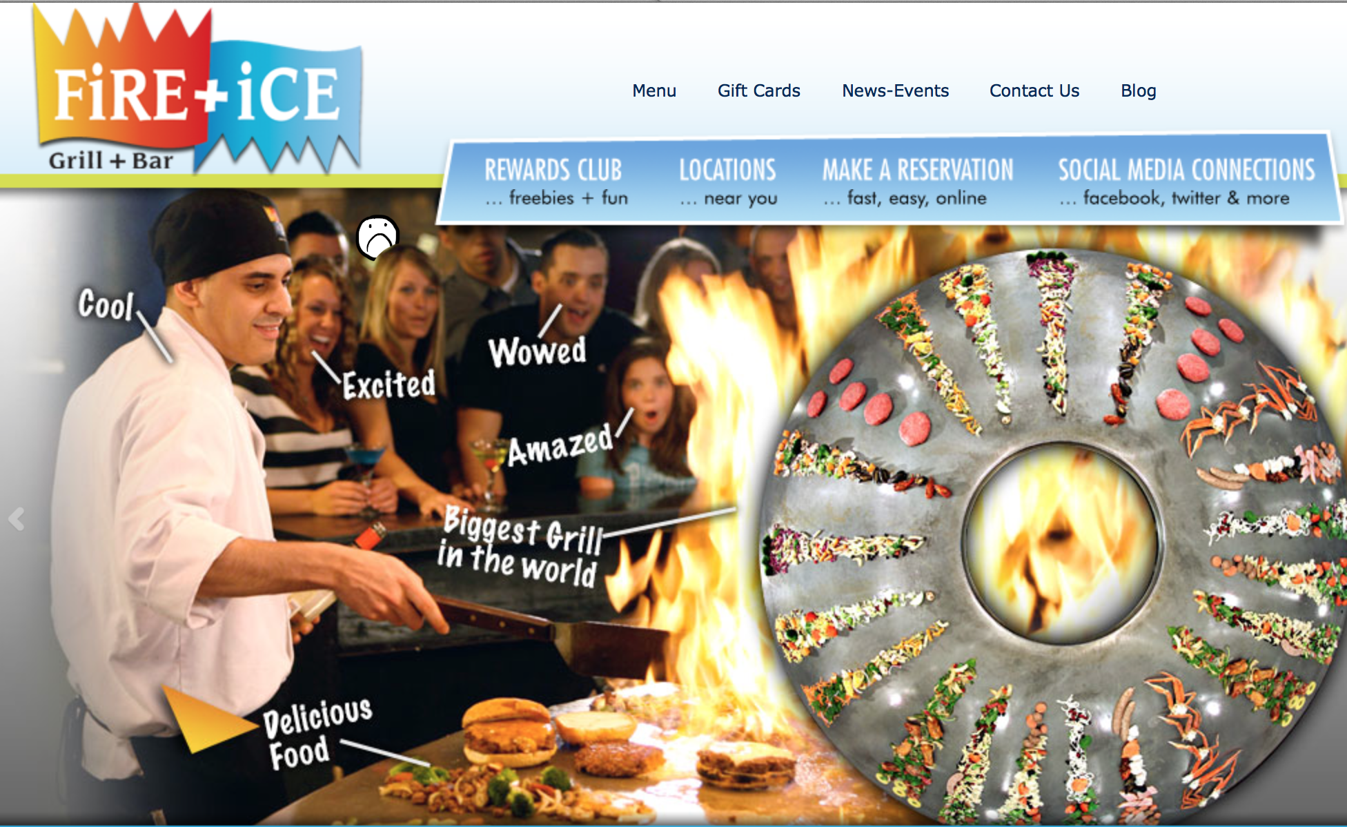 In college, I was a waiter at a weird restaurant called Fire and Ice. This is the front page of their website (fyi, those lame word labels are on the site, not added by me):