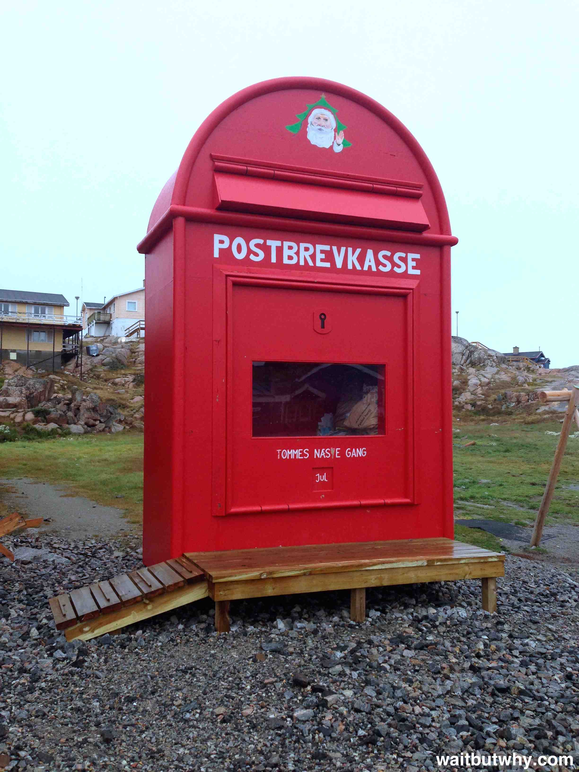 So you know when kids write a letter to Santa and address the envelope to The North Pole and it’s highly inane and that’s that? Well what I’ve now learned is that in many places in the world, those letters are actually shipped somewhere—to a big red mailbox in Ilulissat, a 4,500-person town halfway up Greenland. I didn’t believe it either.