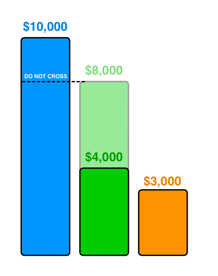 If you’re in first place in Scenario B, you want to make sure that if you get the Final Jeopardy question correct, you guarantee yourself the victory. So you’d assume the worst-case scenario: second place gets it right and wagers everything. That total becomes your “must cross if I get it right” line. In the above situation, that line is at $12,000. So you’d bet no less than $2,001.