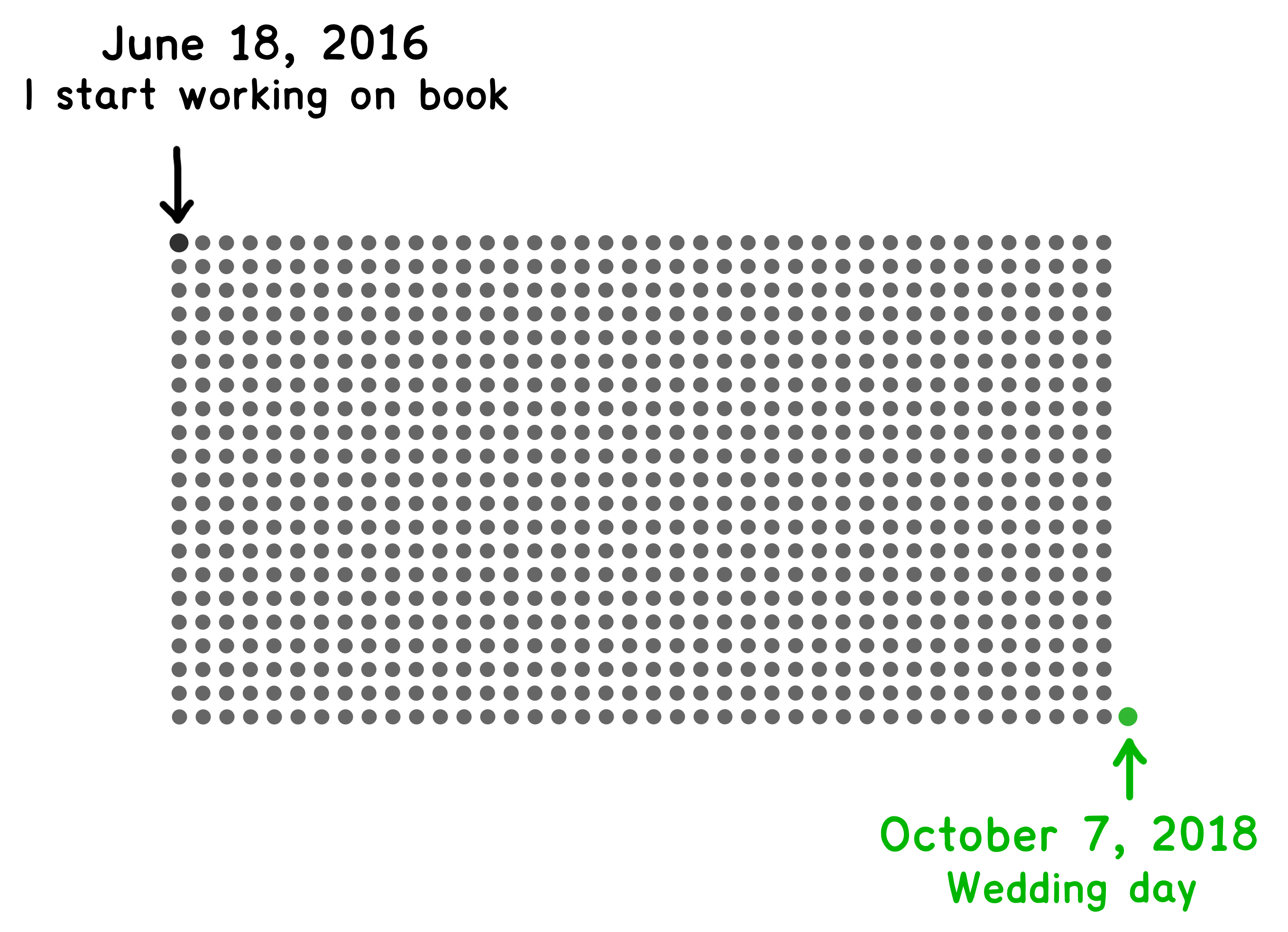 In May of 2017, I asked my girlfriend to marry me. We had been dating since 2011. She had seen the whole Wait But Why journey up close and had now been living with “I’m almost done with this big project” Tim for a year. We set our wedding date for October of 2018. Thank god by then I’d be out of this pit and working on all kinds of other fun projects.